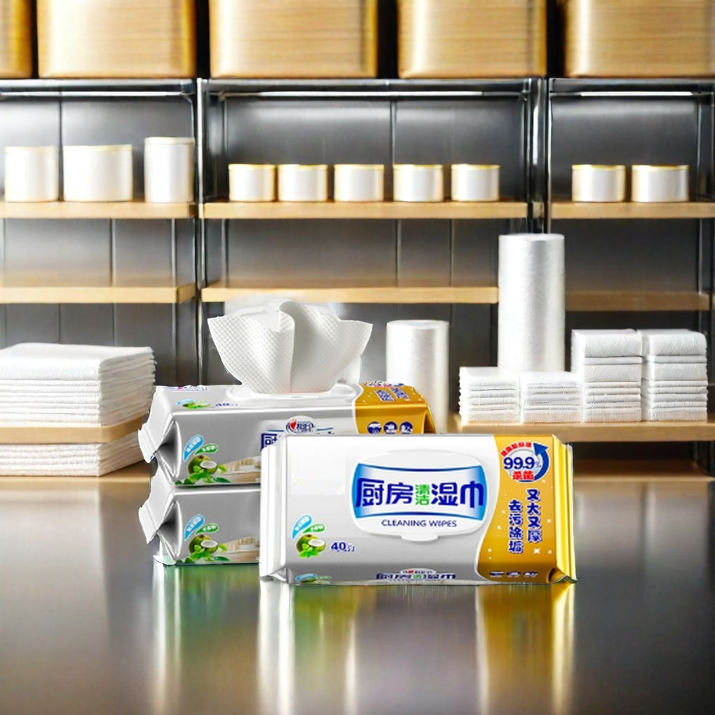 Custom Household Kitchen Multi-Funcional Óleo e Sujeira Superfície Limpeza Toalhetes Húmidos Preço de Fábrica Limpeza Toalhetes